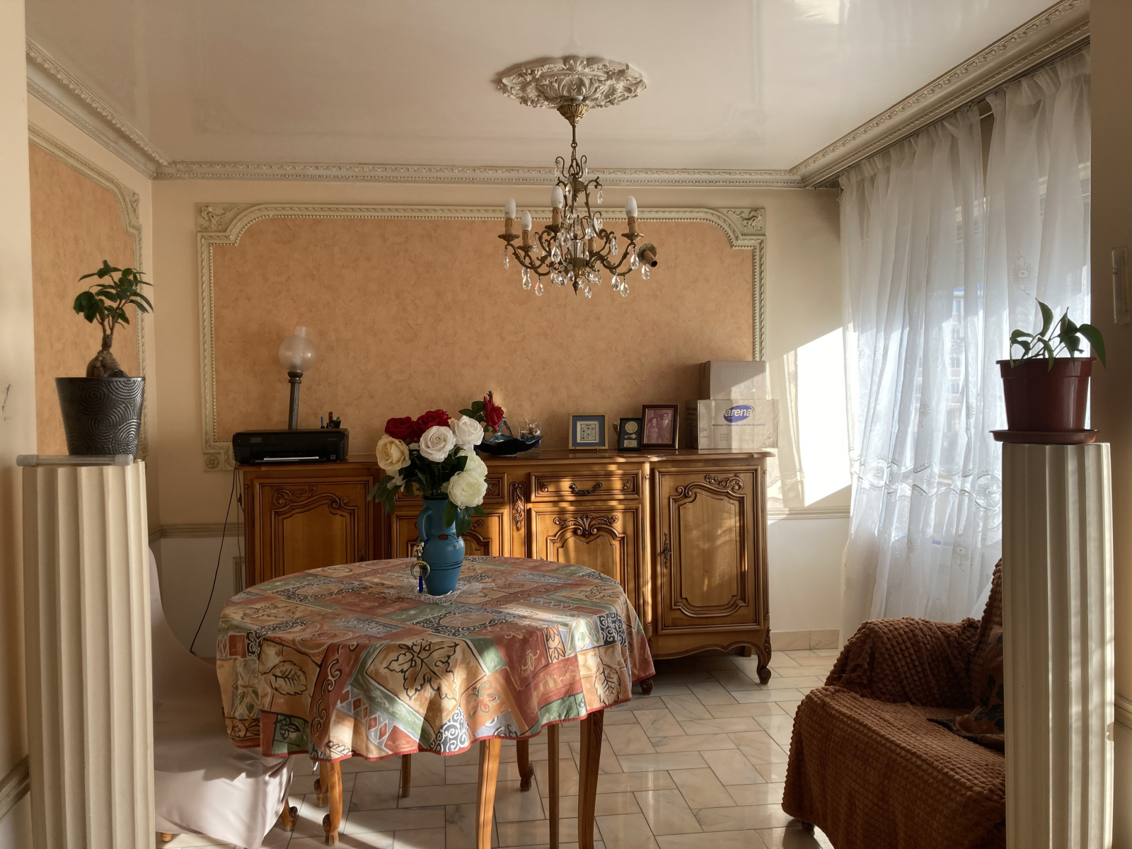 Charmant appartement de 5 pièces de 99m2 proche gare RER D, comprenant entrée, double séjour, salon (ou 4ème chambre), 3 chambres, cuisine séparée, une salle de bains avec wc, une salle d'eau, un wc séparé, cave. chauffage collectif par le sol, eau chaude et froide inclues dans les charges, ascenseur, gardien.